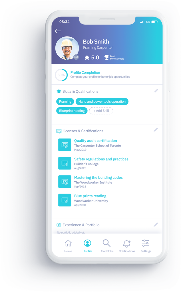 Quickly create your profile from a ready-made list of skills and qualifications — no complicated forms.